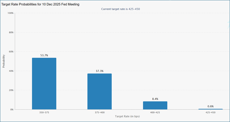 - In other government related news, Fed Governor Adriana Kugler has announced her resignation effective August 8th in order to return to her previous career as a professor at Georgetown University. She was appointed by then President Biden in 2022 to fill a vacant term and leaves slightly short of the 2026 expiration. President Trump will now have an opportunity to add a second governor to the Federal Reserve Board, assuming Chair Powell retires following the end of his term as Chair in May next year (his governor’s term doesn’t expire until January 2028). While this is an issue that won’t develop overnight it does point to a Board that could be quite different by mid-2026 than it looks now. Trump said a decision on a new Fed governor will come this week, which could very well be his pick for the new chair in waiting. That’s one reason futures market now sees better than 50% odds of 75bps in cuts by year-end (see graph below).